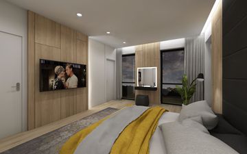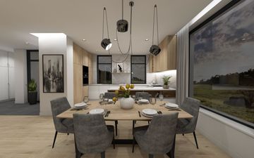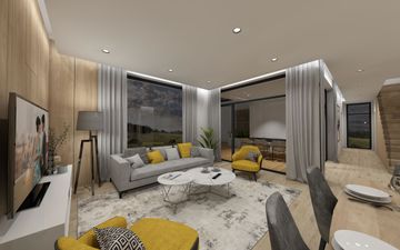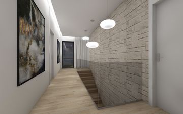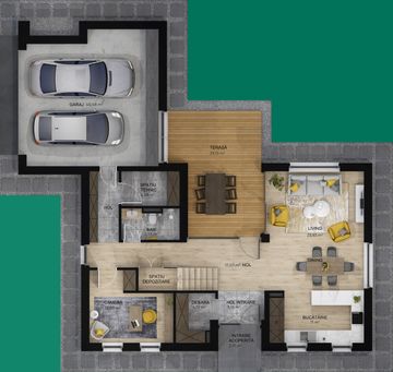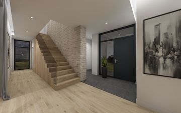 Una dintre casele cu cea mai contemporană abordare arhitecturală te întâmpină cu un spațiu interior generos și suprafețe vitrate, care aduc natura în interior datorită holului cu perspectivă deschisă spre zona de terasă și grădină.