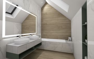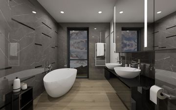 Folosirea pietrei ca finisaj și placările cu lemn sunt de inspirație tradițională, însă reinterpretate și adaptate într-un context contemporan.